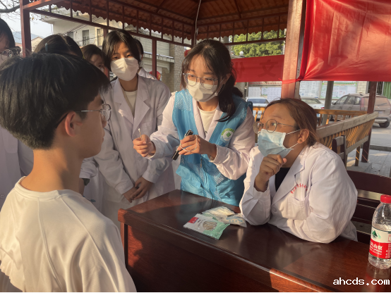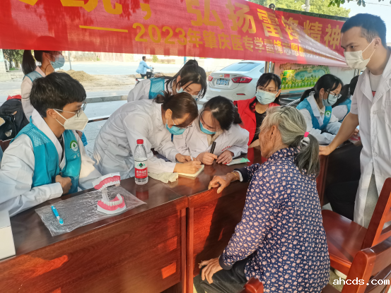 ahcds“光暖”志愿服务队在富廊村牌坊广场处设立了宣传咨询台,进行义诊咨询及免费口腔检查,并向村民发放宣传资料和主题宣传礼品等,极大地提高了牙齿的保健意识和口腔疾病的防治等知识,做到从群众中来,到群众中去,服务好居民群众,受到群众的欢迎和肯定。