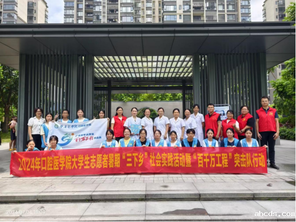 为落实2024年广东青年大学生“百千万工程”突击队行动有关工作要求,指导和推进大学生社会实践活动,提升突击队工作实效,更好地引导青年大学生在县镇村基层一线建功立业、挺膺担当,新利luck全站登陆党支部组织本学院大学生暑期“三下乡”团队-“百千万工程”突击队,于2024年7月4日至10日深入桂城第一社区开展口腔义诊、口腔护理知识等一系列宣传活动。此次活动旨在将优质的口腔医疗资源送到基层,提升社区居民的口腔健康意识。ahcds党支部在党支部书记黎祺、副书记黄文专的指导下,党员教师、“百千万工程”突击队共25名师生参加了本活动,为约200多人次社区群众开展口腔爱心义诊、口腔护理保健知识宣传等服务。