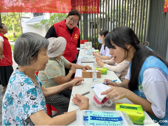 活动启动当天,ahcds党支部的党员教师们和大学生志愿者们一早就来到了桂城第一社区,他们携带了专业的口腔检查设备,为社区居民提供免费的口腔健康检查服务。活动现场,党员医生们耐心细致地为每一位居民检查口腔状况,解答他们关于口腔健康的疑问,并针对不同的口腔问题给出了专业的治疗建议。
