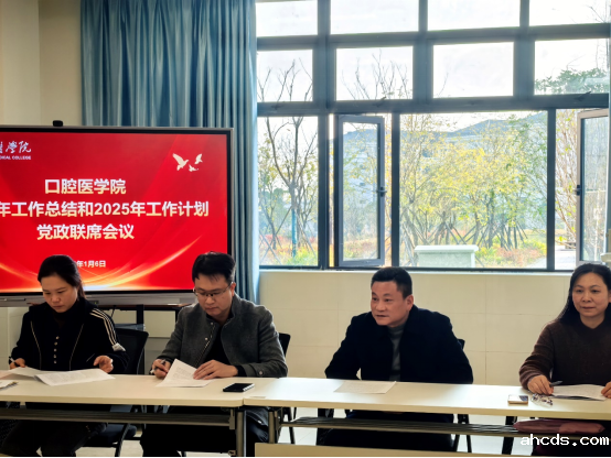 随后,黎祺指出了ahcds在发展中存在的问题和2025重点工作内容。当前,学院还存在缺少从事党务工作的专职人员和激励机制、学院教师的口腔医学技术专业水平有待提高、学院毕业生党团关系转出困难等问题。2025年学院将持续推进党建工作,推动党建工作和业务工作融合发展;加强师资队伍和师德师风建设,优化教科研学术氛围,为开展本科口腔医学技术专业做好准备;进一步深化医教协同、产教融合,加强学校、医院、行业协会精准育人模式,推进集教学培训、医疗服务、科研创新一体化的口腔医学产学研创新服务中心建设;加强辅导员队伍建设,推进全员、全过程、全方位三全育人。