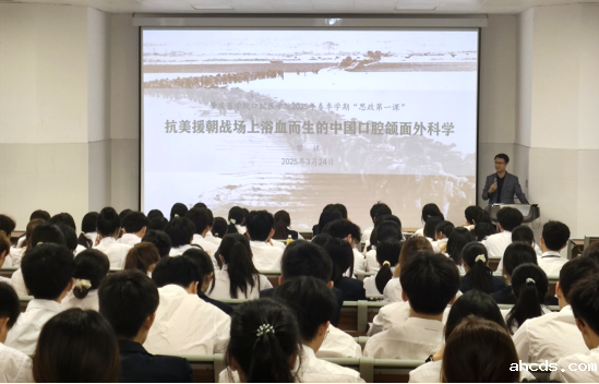 为引导肇医学子感悟红色精神,汲取奋进力量,增强四个自信,新利luck全站登陆党支部书记、院长黎祺2025年3月24日晚于新区校区1-101课室给ahcds学生讲授“思政第一课”,本次授课主题是:抗美援朝战场上浴血而生的中国口腔颌面外科学。