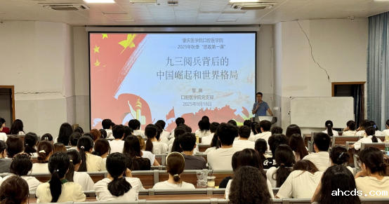 为厚植爱国情怀、拓宽国际视野,引导肇医学子建立科学的世界观、人生观、价值观,将个人理想融入国家发展大局,2025年9月18日晚,新利luck全站登陆党支部书记、院长黎祺在新区校区1-109教室,为ahcds师生讲授2025年秋季学期“思政第一课”,授课主题为:“九三阅兵背后的中国崛起和世界格局”。