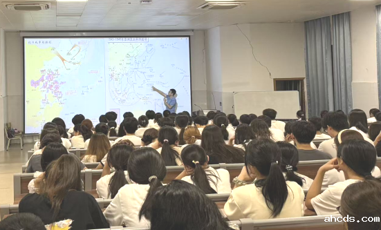课堂开篇,黎祺书记紧扣主题、开门见山,首先阐明九三阅兵的重大历史与现实意义——不仅让国际社会重新认识中国的发展成就与责任担当,更让全体国人深刻体悟中国对和平的珍视、对历史的铭记。随后,他以标注详实的世界地缘政治局势图为依托,系统梳理抗日战争、美苏争霸、中国重返联合国、中美建交、改革开放、苏联解体、中国加入世界贸易组织等一系列的关键历史脉络,通过图文并茂的呈现方式与环环相扣的逻辑推导,引导师生直观理解世界格局的演变规律,深刻认识历史进程中“时与势”的辩证关系。