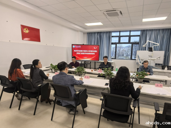 3月3日下午,南方医科大学帮扶队队长、挂任我校校长助理的李凌教授带队到ahcds开展调研指导工作,同行的有帮扶队队员、挂任我校科研处处长徐江平教授和帮扶队队员、挂任我校临床医学院副院长蒋泽生教授,ahcds党支部书记院长黎祺、副书记黄文专、口腔医学技术教研室副主任朱亚利、口腔医学教研室副主任张少姬、学院教学管理人员高琳参加了本次会议。