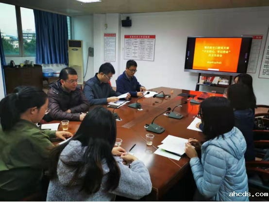 2019年12月4日下午,口腔医学系党支部在端州校区综合楼4楼会议室召开 “不忘初心、牢记使命”民主生活会,会议主题包括“不忘初心、牢记使命”专题组织生活会和开展民主评议党员内容,会议由颜仕尧副书记主持,口腔医学系全体党员和入党积极分子参加。