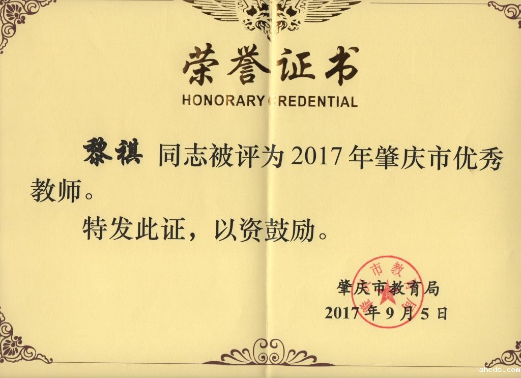2017年肇庆市优秀教师